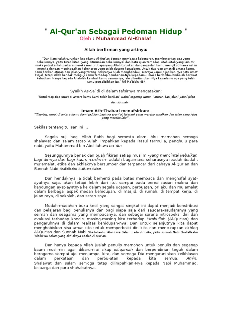 DOC) Al-Qur’an dan Hadis sebagai Pedoman Hidup Umat Islam (Serial Materi Ajar al-Qur;an Hadis MTs | muhammad roza - Academia.edu
