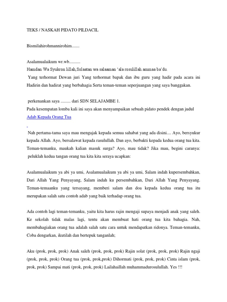 DOC) TEKS / NASKAH PIDATO PILDACIL | kkgpai kabklaten - Academia.edu