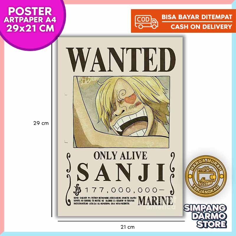 Poster One Piece Buronan Vinsmoke Sanji Wanted Bounty Terbaru …