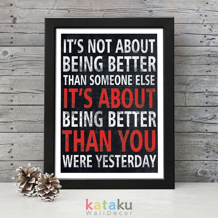 Pajangan Poster Kata-Kata Motivasi It’s Not About Being Better Than Someone Else Hiasan Dinding | Shopee Indonesia