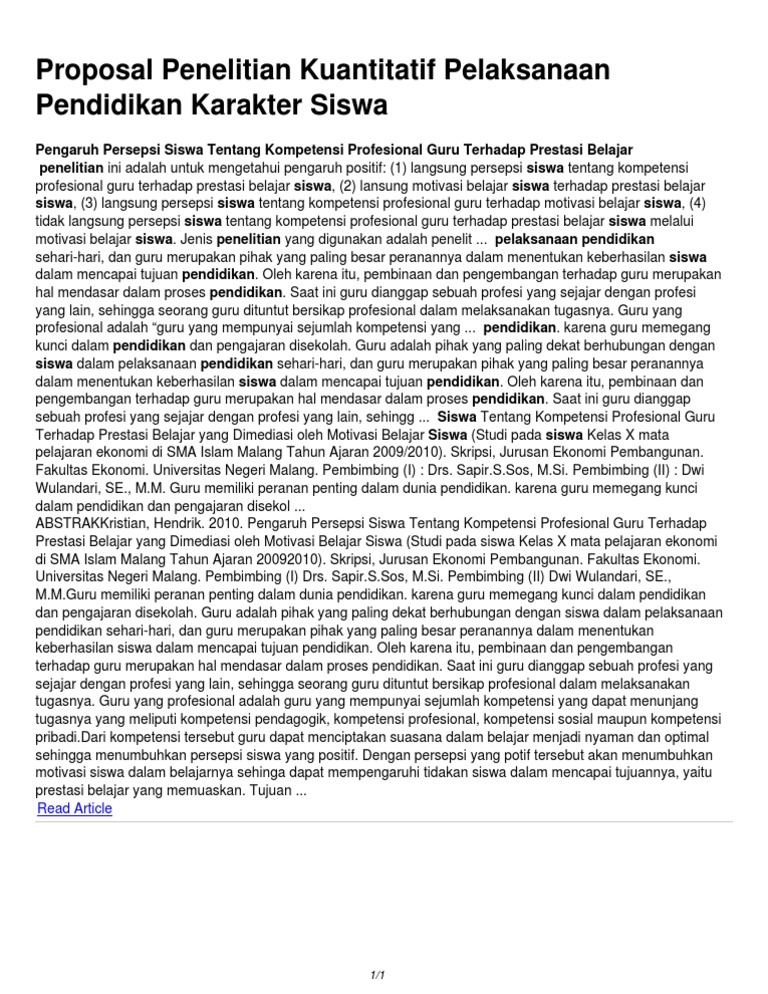 Proposal Penelitian Kuantitatif Pelaksanaan Pendidikan Karakter Siswa