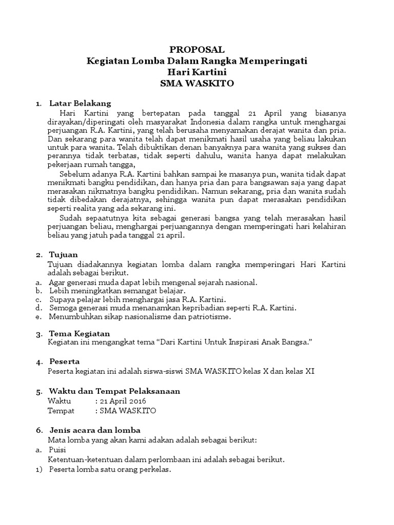 Contoh proposal memperingati hari kartini smk alqodiriyah windusari