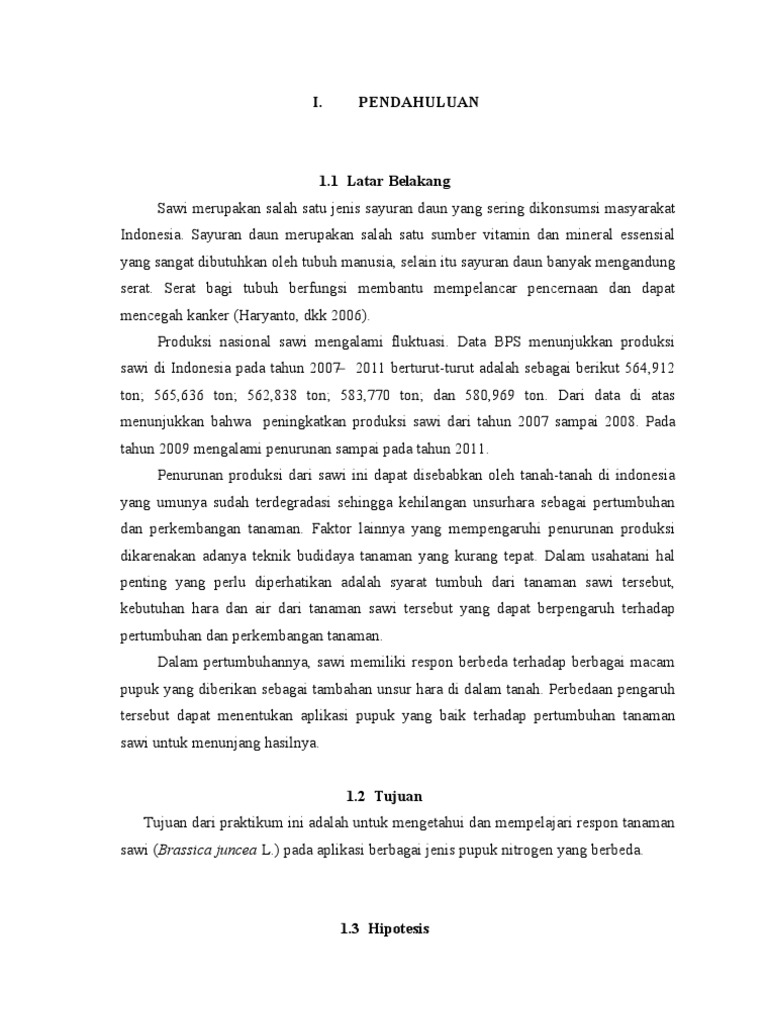 DOC) BUDIDAYA TANAMAN SAWI BAB 1 PENDAHULUAN 1.1 Latar Belakang …