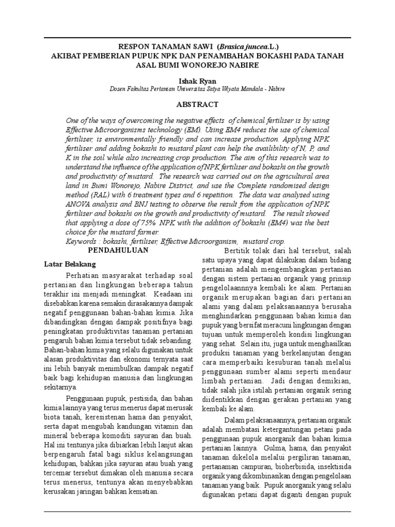 DOC) EFEKTIFITAS PEMBERIAN PUPUK HAYATI PADA | ariel sasa …