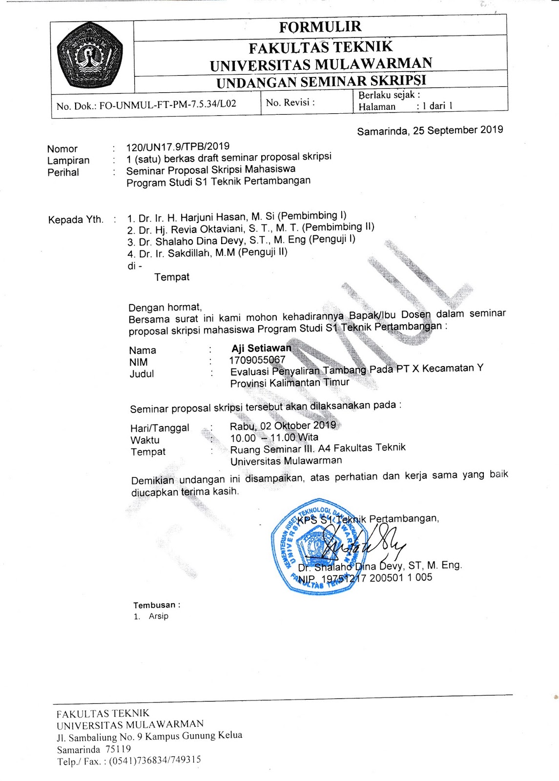 SEMINAR PROPOSAL AJI SETIAWAN 1709055067 (RABU, 2 OKTOBER 2019 …