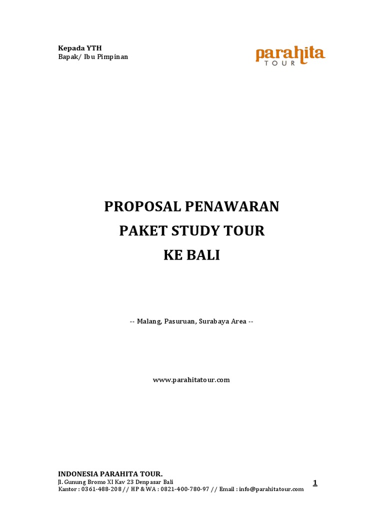 PROPOSAL PENAWARAN PAKET STUDY TOUR KE BALI - PDF Download Gratis