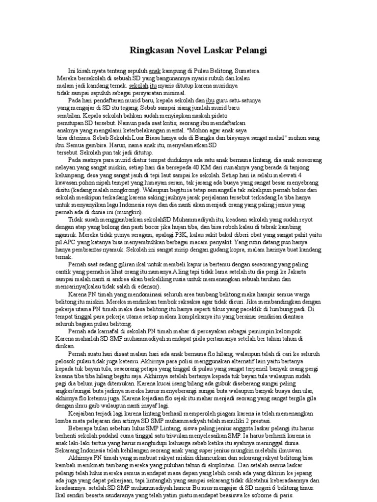 DOC) Ringkasan Cerita Novel Laskar Pelangi | Ria Ayu - Academia.edu