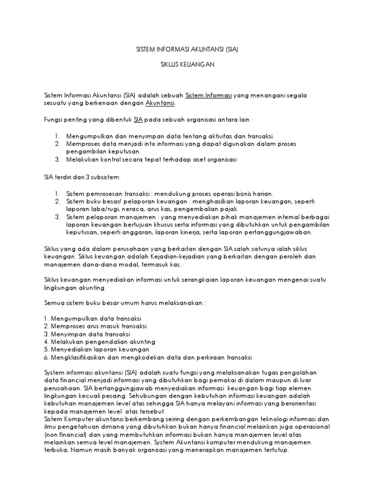 Siklus Sistem Informasi Akuntansi