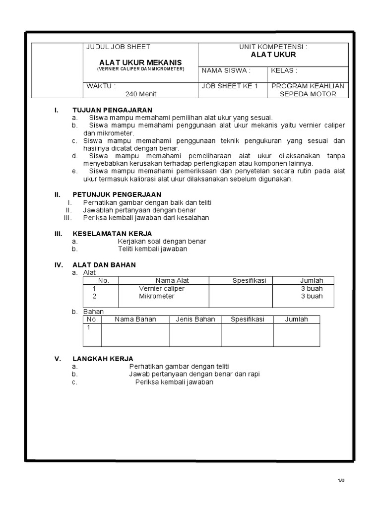 Soal Isian Menggunakan dan Memelihara Alat Ukur (Teknik Kendaraan Ringan) - SATUAN KEJURUAN