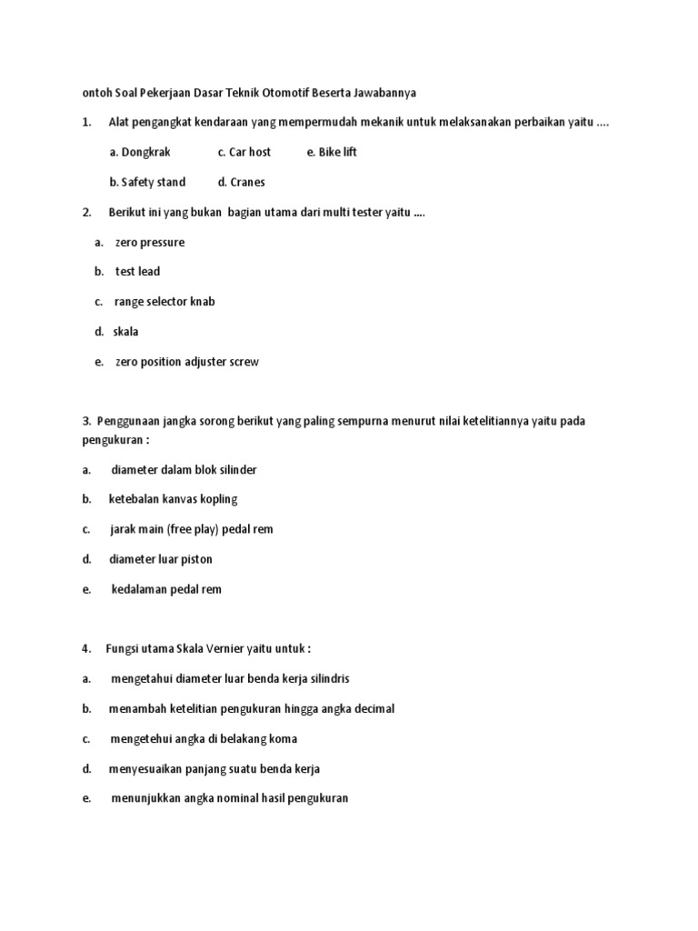 Contoh Soal Pekerjaan Dasar Teknik Otomotif Kelas 10 Semester 2 - Inputsoal.com