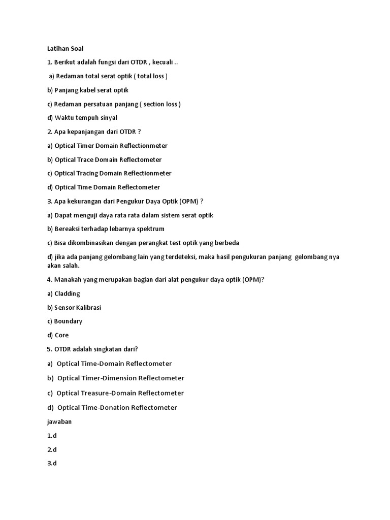 Contoh Soal Pilihan Ganda Tentang Fiber Optik - Dapatkan Contoh