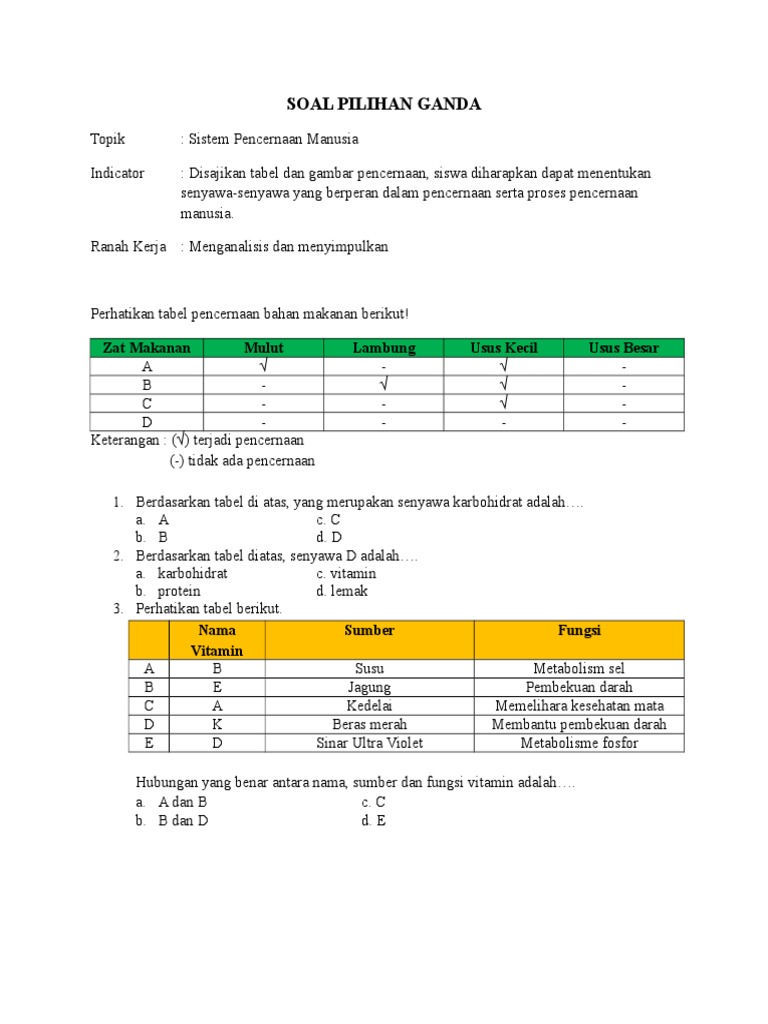 DOC) 5 Soal Uji Coba Sistem Pencernaan Makanan | Desra yanti - Academia.edu