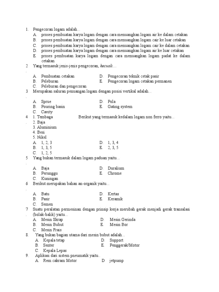 Contoh Soal Pilihan Ganda Dan Essay Lengkap Dasar Dasar Mesin Lengkap