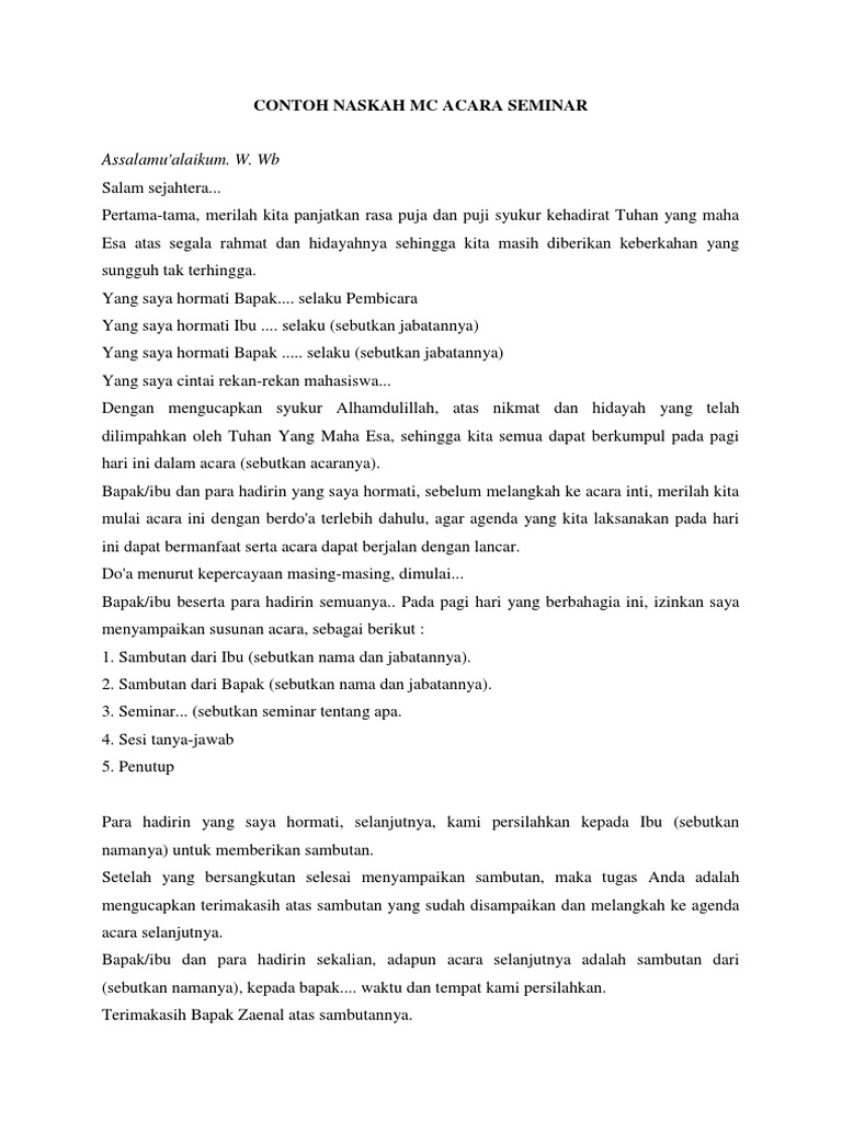 DOC) NASKAH PEMBAWA ACARA | Denta Mera - Academia.edu