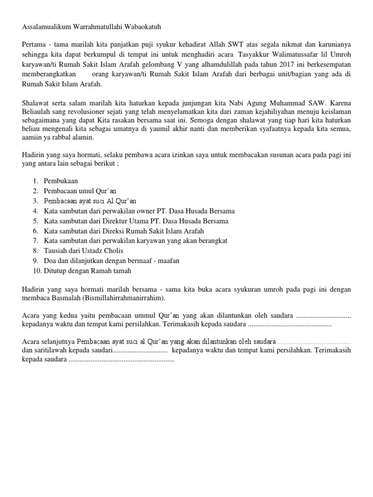 DOC) Contoh kata sambutan tuan rumah pada acara syukuran | Rahman …