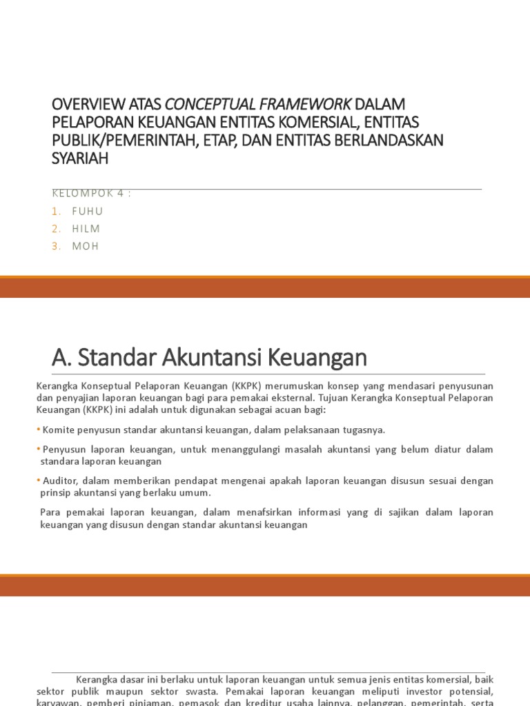 Overview Atas Conceptual Framework Dalam Pelaporan Keuangan Entitas Komersial, Entitas Publik/Pemerintah, Etap, Dan Entitas Berlandaskan Syariah