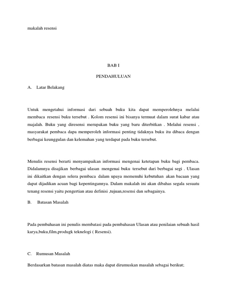 DOC) Resensi adalah suatu tulisan atau ulasan mengenai nilai sebuah hasil karya atau buku | Hilal Habib - Academia.edu