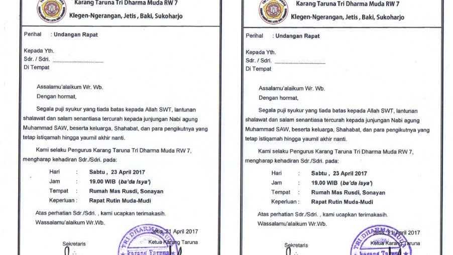 5 Contoh Surat Undangan Rapat Karang Taruna Terlengkap - Berkas Surat