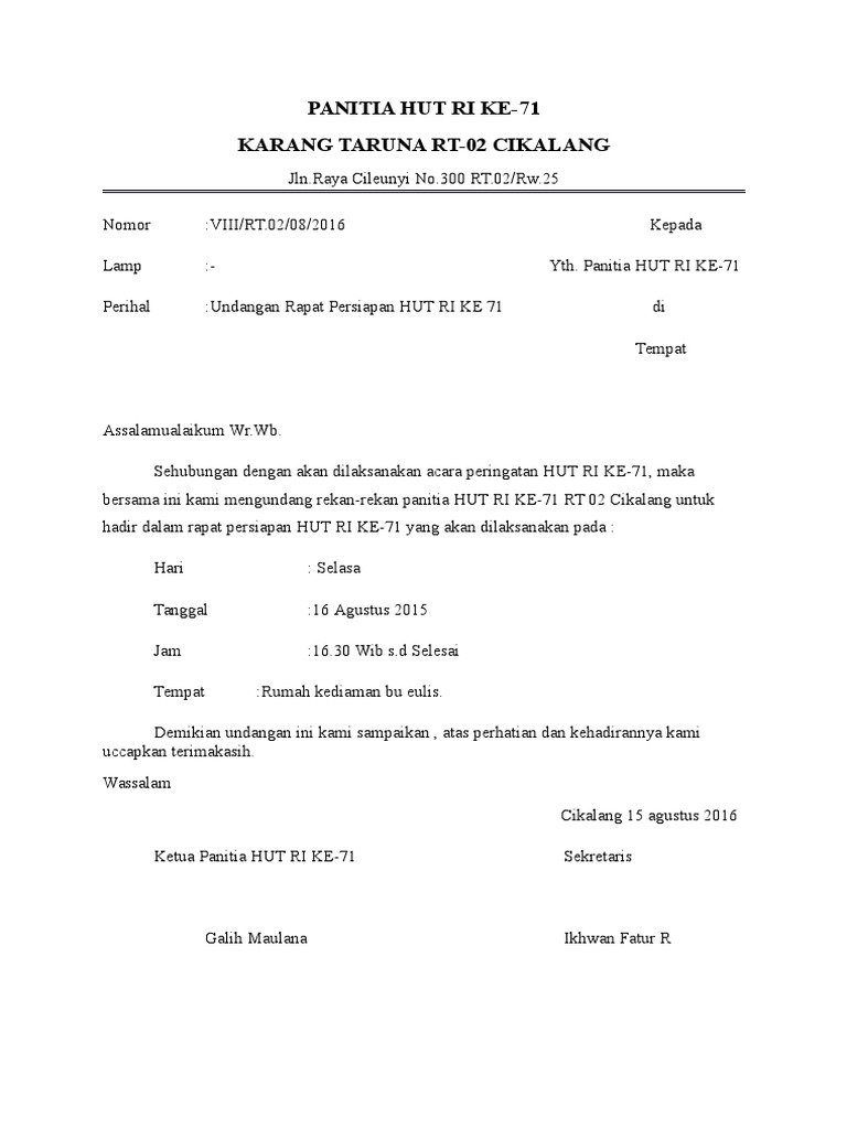Contoh Undangan Rapat Hut Ri - Nusagates