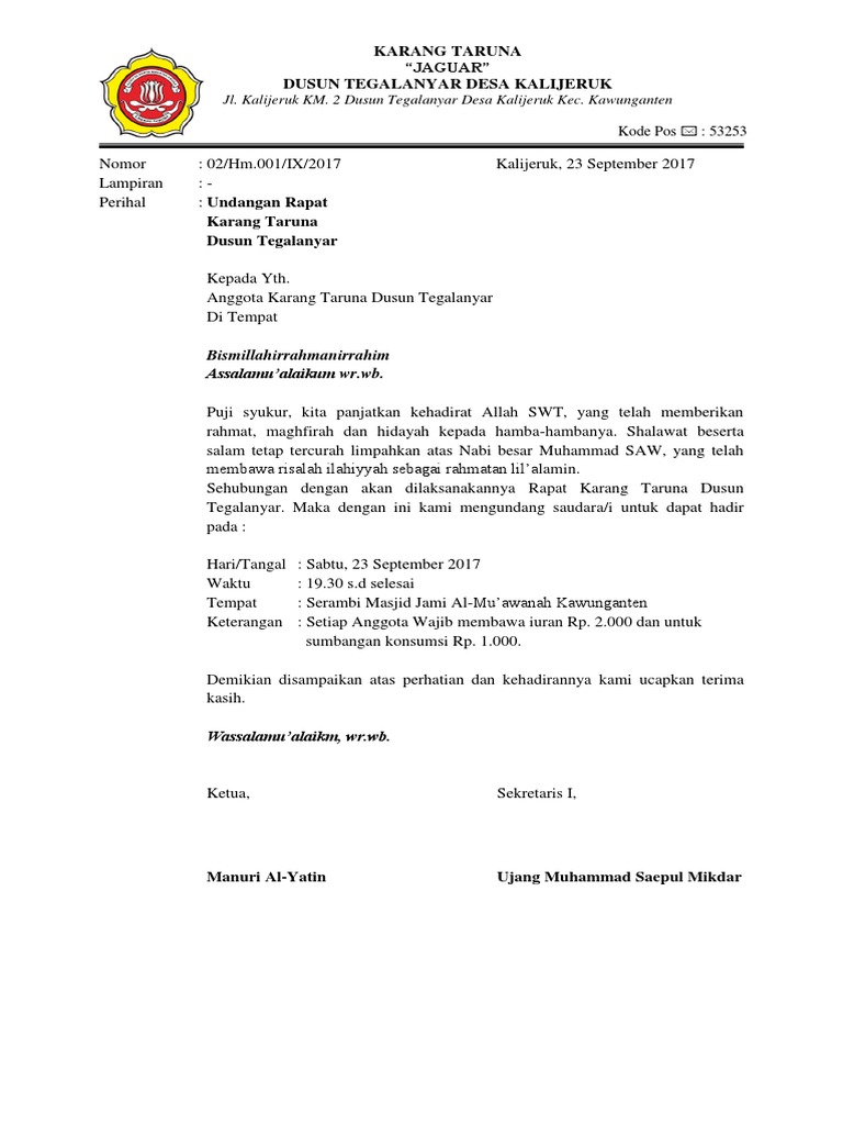 Contoh Surat Undangan Karang Taruna – cermin-dunia.github.io
