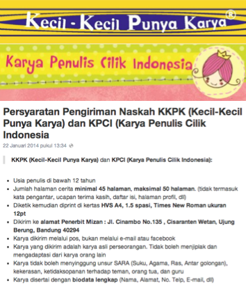 Thiamisu: Persyaratan Pengiriman Naskah KKPK (Kecil-Kecil Punya Karya) dan KPCI (Karya Penulis Cilik Indonesia)