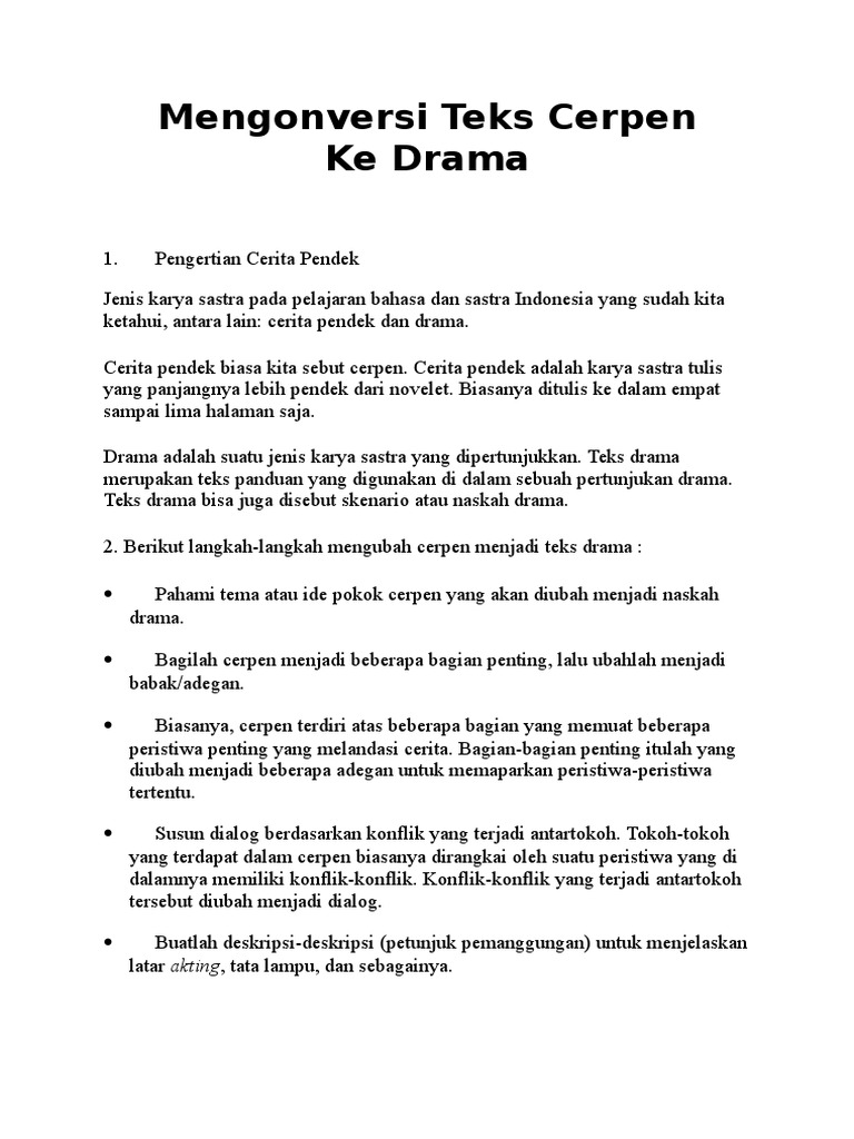Contoh Cerpen Menjadi Naskah Drama Singkat - Contoh Resource