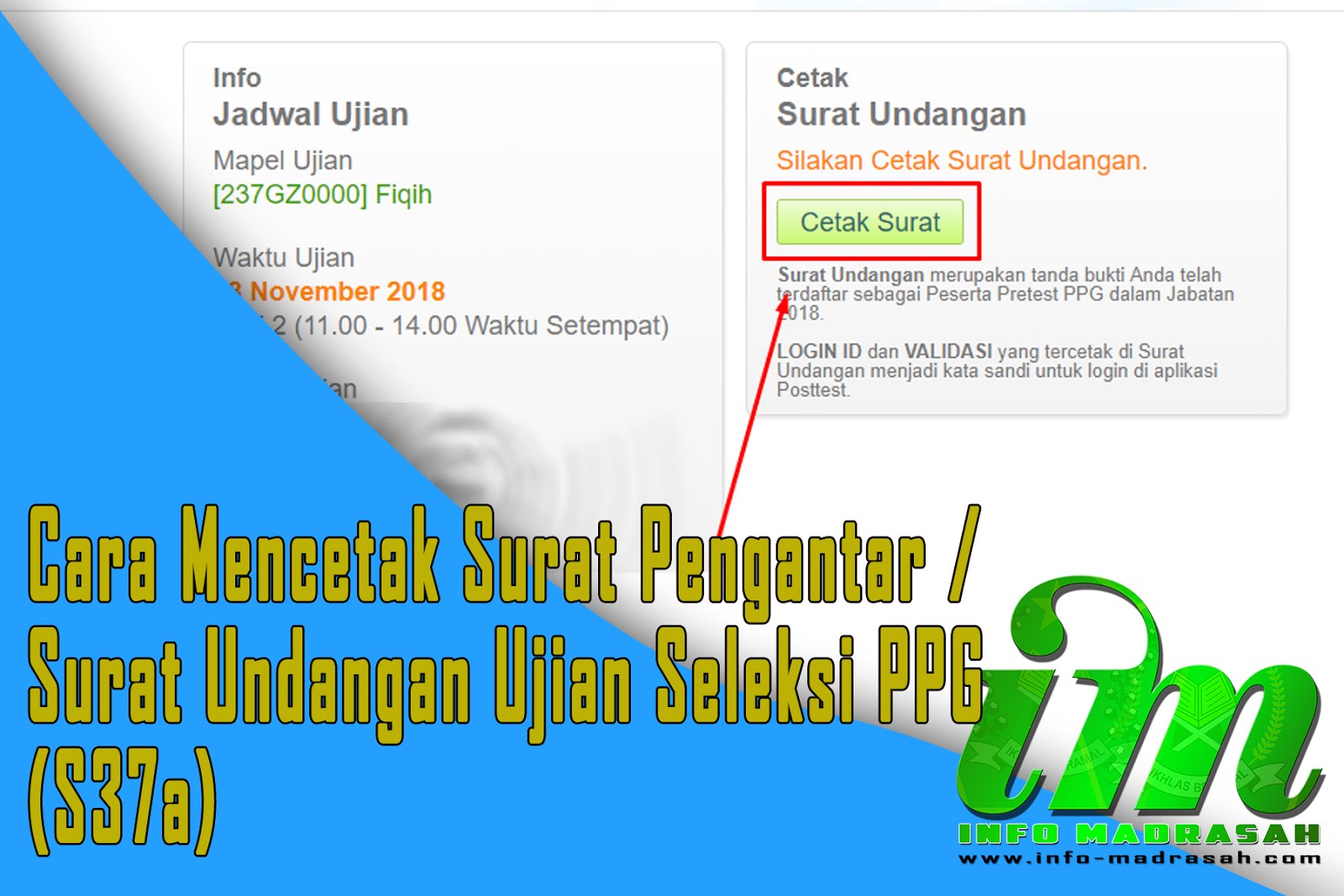 Cara Mencetak Surat Pengantar / Surat Undangan Ujian Seleksi PPG (S37a) - Info Madrasah