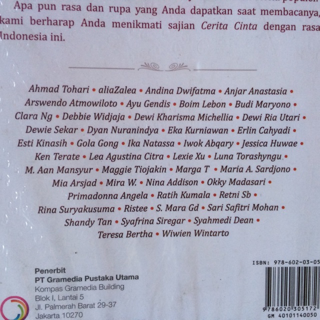 Jual Beli Cerita Cinta Indonesia Online Terlengkap - Gramedia Pustaka Utama | Prelo.co.id