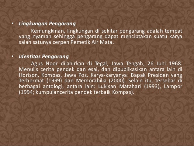 Analisis Cerita Pendek (Judul: Pemetik Air Mata)