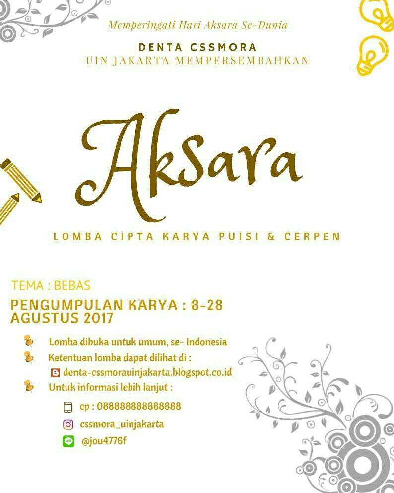 Lomba Menulis Puisi & Cerpen Nasional AKSARA dari CSSMORA UIN Jakarta [Gartis] - Info Lomba 2020 Terbaru