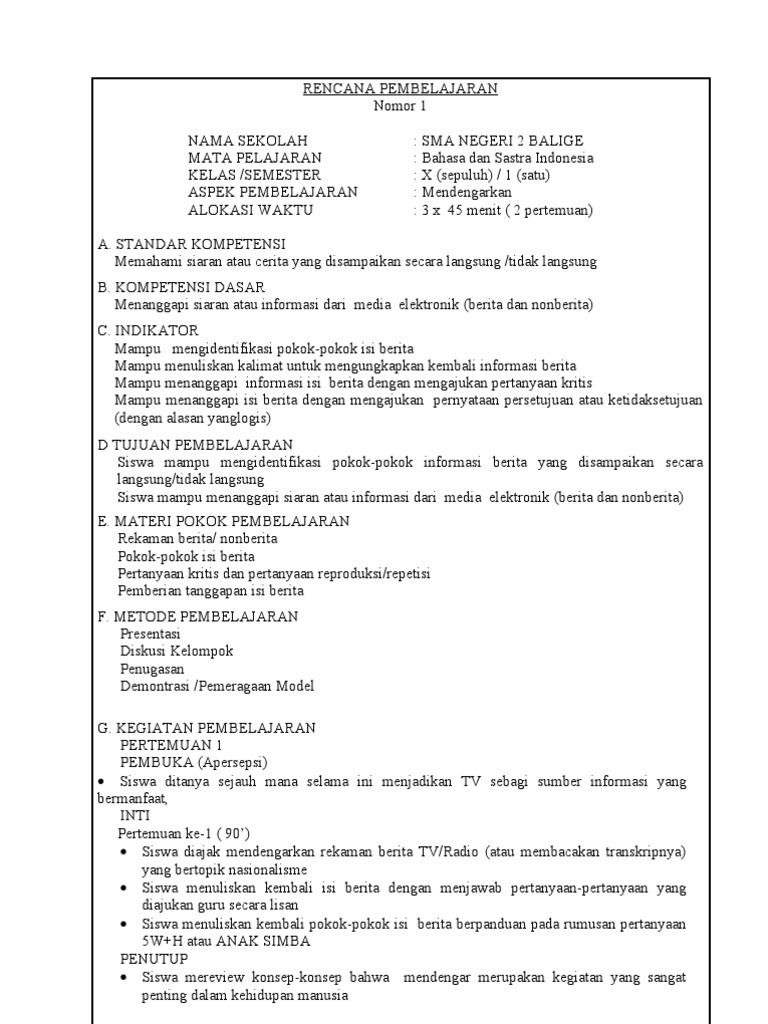 Contoh RPP 1 Lembar Untuk SMA/SMK/MA Lengkap Terbaru – MITRA KULIAH