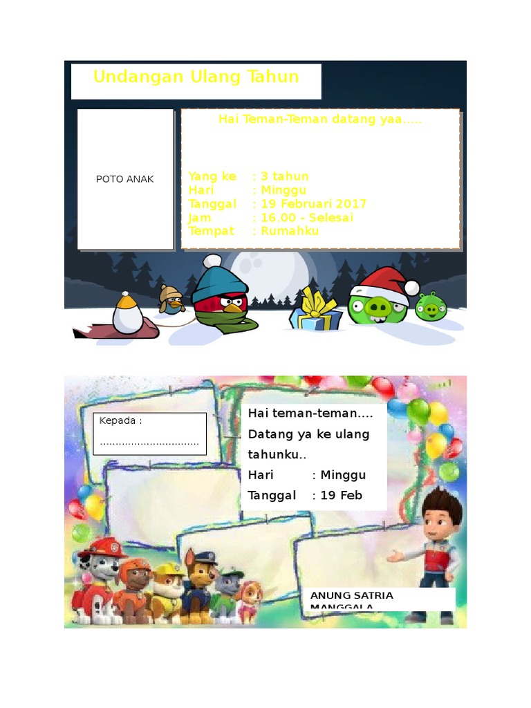 Undangan Ulang Tahun Anak Lucu Dan Unik Format ms word - TRIPROFIK.COM