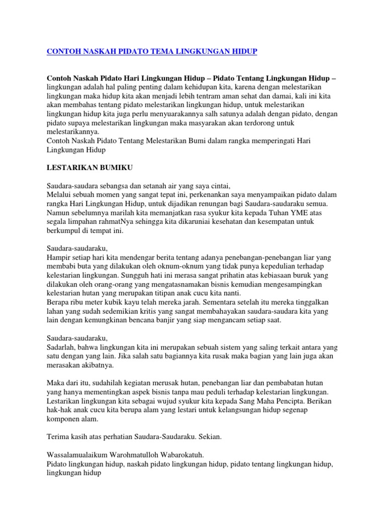 DOC) Pidato Tentang Lingkungan Hidup | Ruchyat Tjanaba - Academia.edu