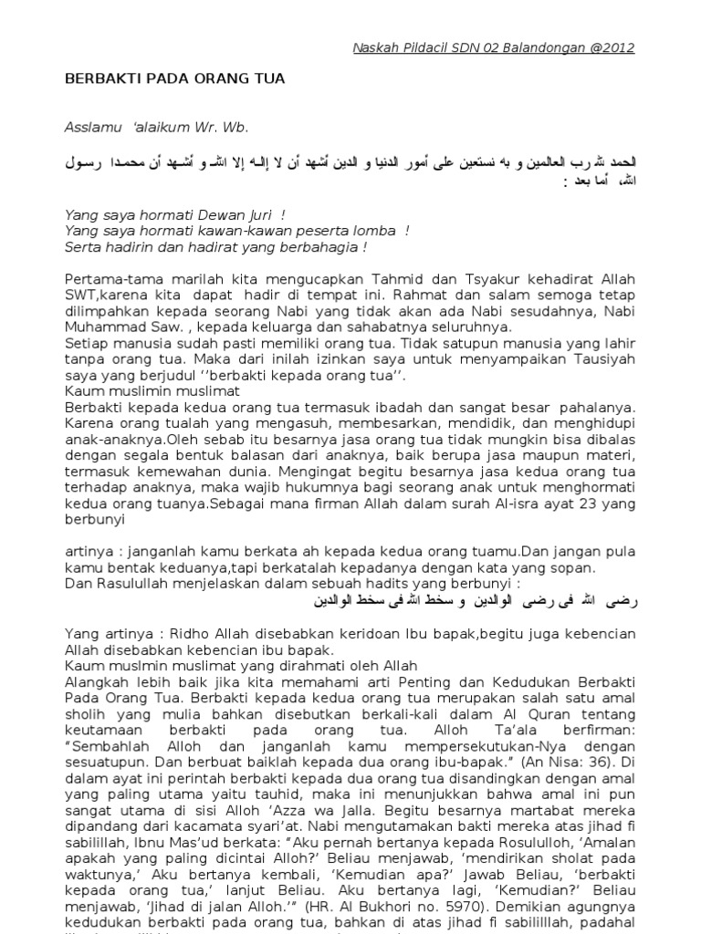 DOC) Contoh Teks Pidato Pildacil -Berbakti Kepada Orang Tua | Henny Rosa - Academia.edu