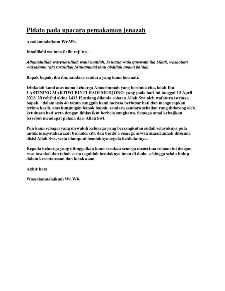 Pidato Pada Upacara Pemakaman Jenazah