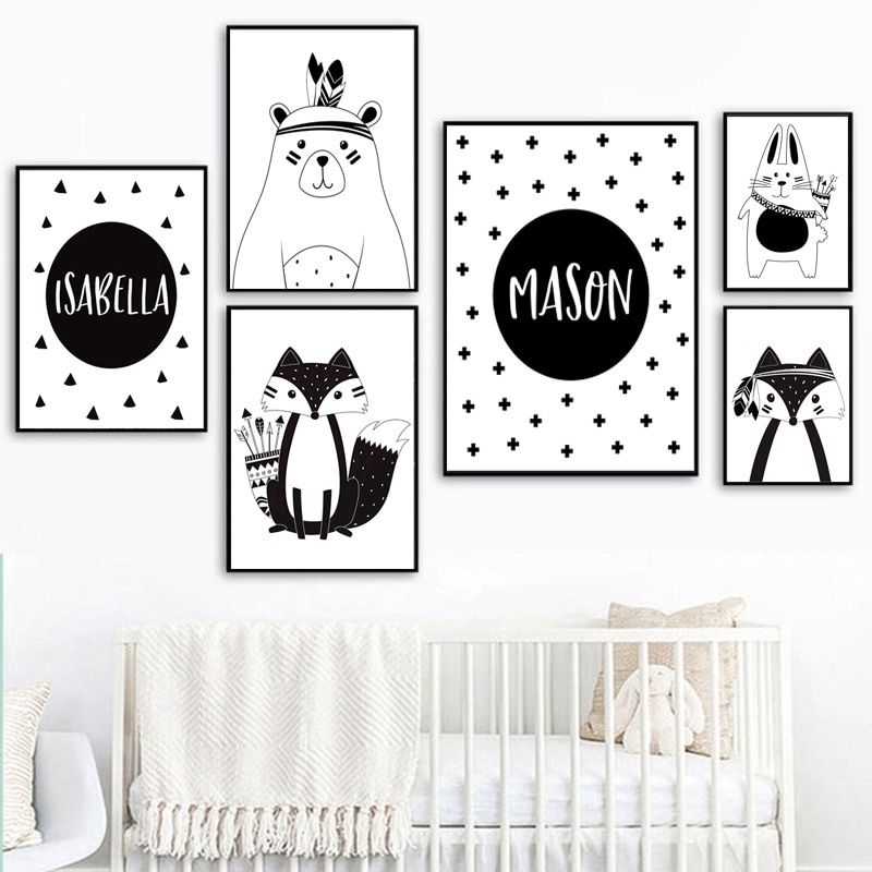 Baru gambar poster art untuk kamar anak anak bayi lukisan dekoratif hitam dan putih batman/kelinci Bingkai poster dan cetakan tidak termasuk|art stone|picture book for kidspicture gems - AliExpress