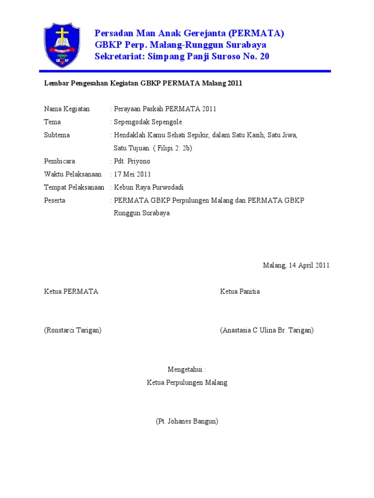 Contoh Contoh Proposal Kegiatan Paskah Gereja | Download Contoh Laporan Bacaan