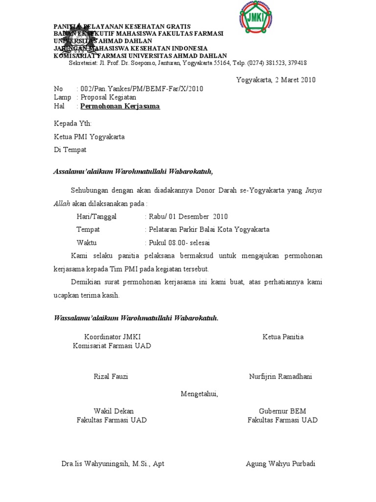 Surat Permohonan Kerjasama Donor Darah Ke Pmi - Dapatkan Contoh