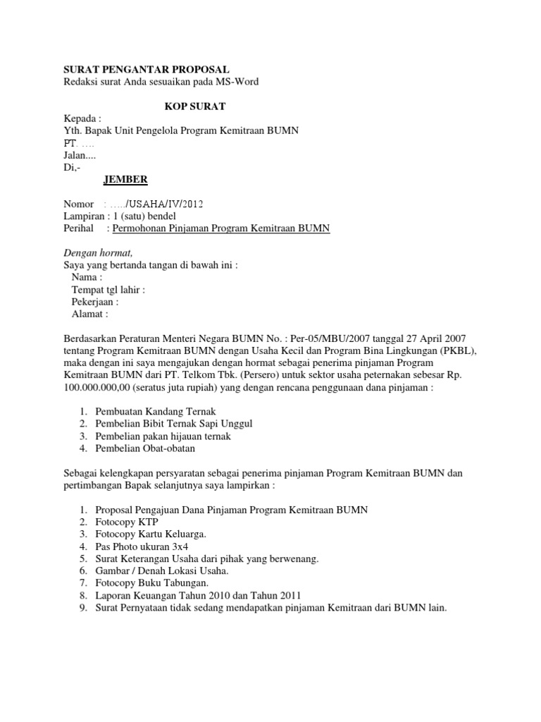 DOC) CONTOH PROPOSAL BANTUAN DANA PINJAMAN PROGRAM KEMITRAAN BUMN | sparta man - Academia.edu