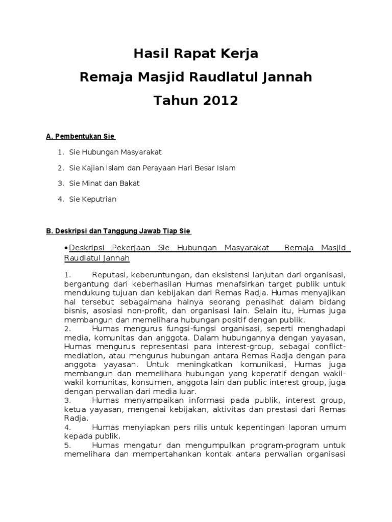 Hasil Rapat Kerja Remaja Masjid Raudlatul Jannah 2012
