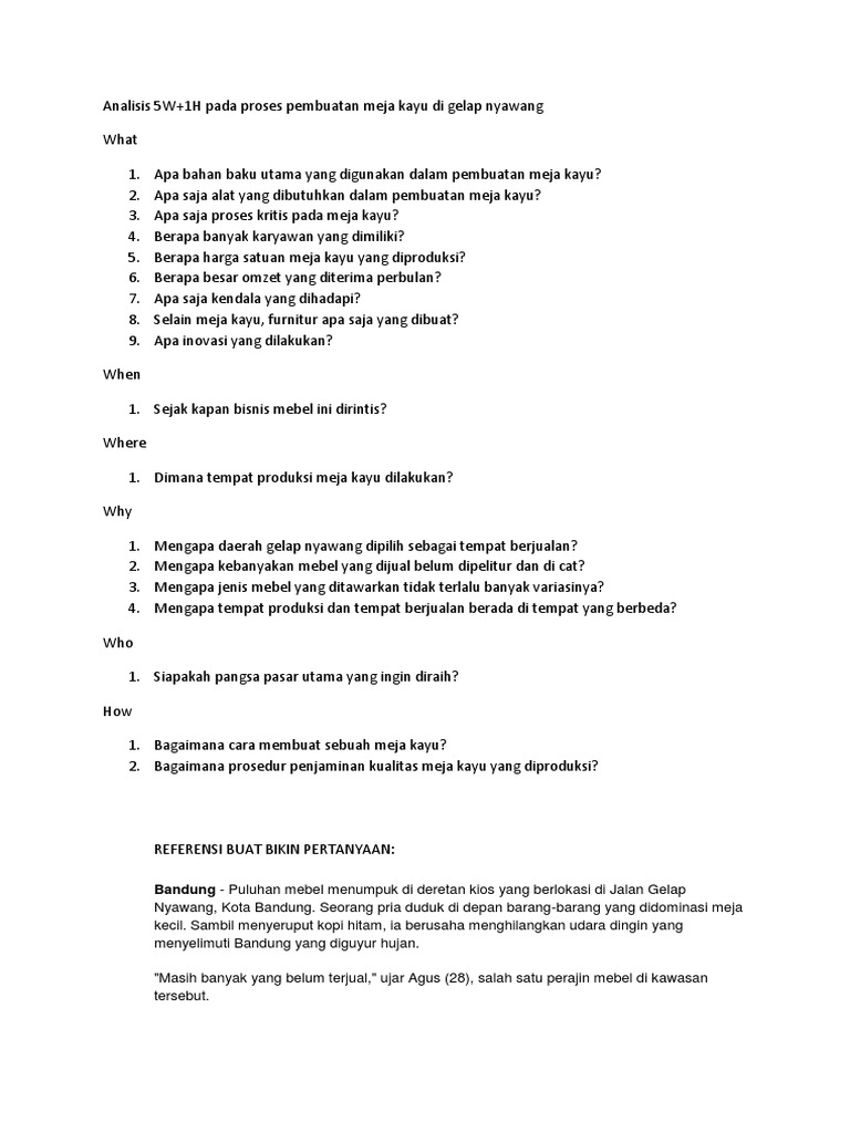 Analisis 5W1H Rekayasa Sistem Kerja pada Bisnis Mebel
