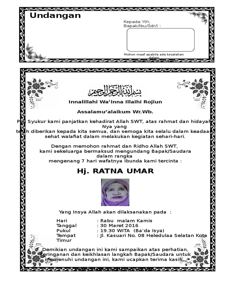 DOC) Contoh Undangan Tahlilan 40 Hari Meninggalnya | Haekal Iqbal - Academia.edu