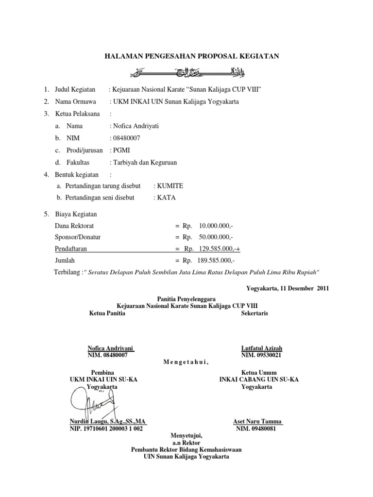 10+ Contoh Lembar Pengesahan Proposal, Laporan Dll [+File Doc]