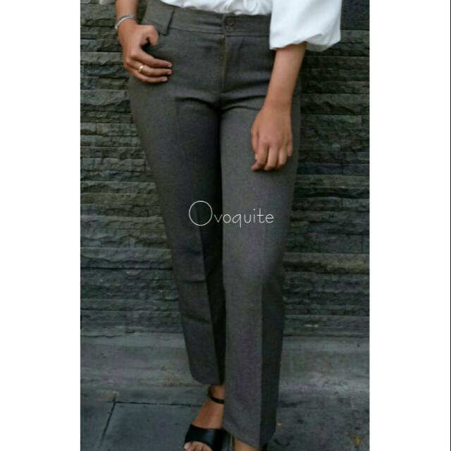 Celana Bahan / Formal / Kerja Abu-abu Wanita | Shopee Indonesia