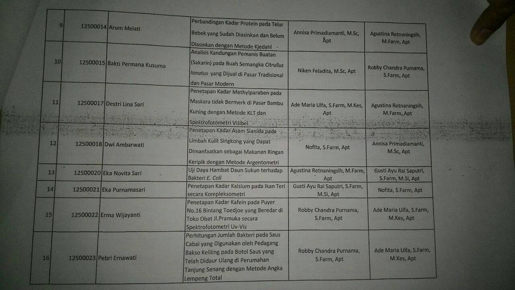 Akafarma Malahayati on Twitter: “Daftar judul KTI dan pembimbing 1 & 2 akafarma 012 http://t.co/otycs8OXEP”