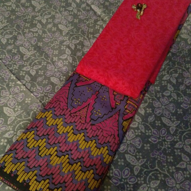 Kain Embos Warna Pink Fanta Dengan Kain Batik Yang Serasi