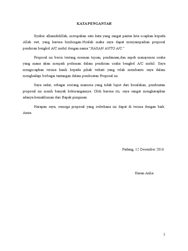 Kata Pengantar Proposal Bisnis