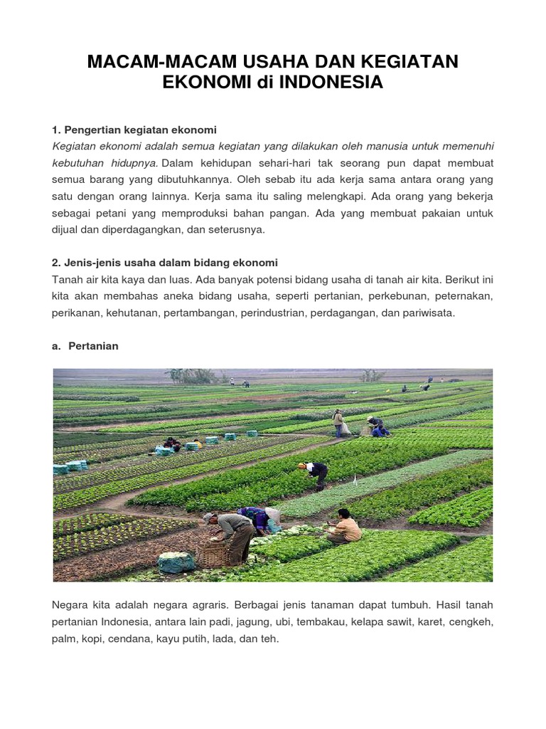 Kliping Tentang Jenis Jenis Usaha Dan Kegiatan Ekonomi Di Indonesia