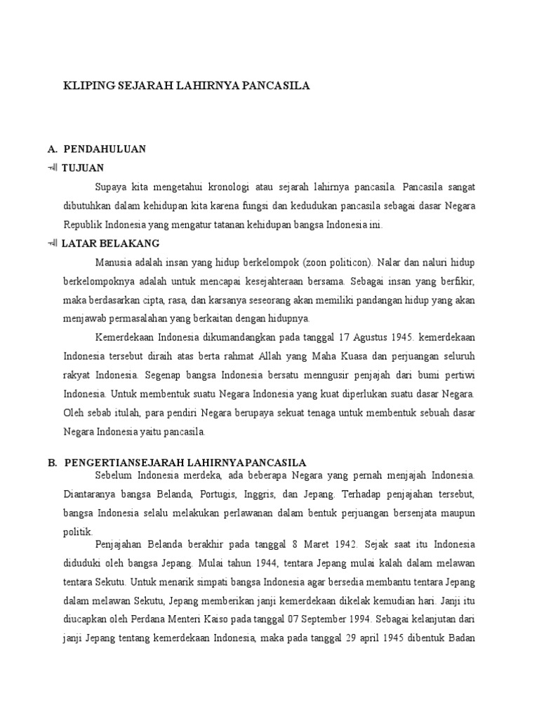 Kliping Sejarah Lahirnya Pancasila