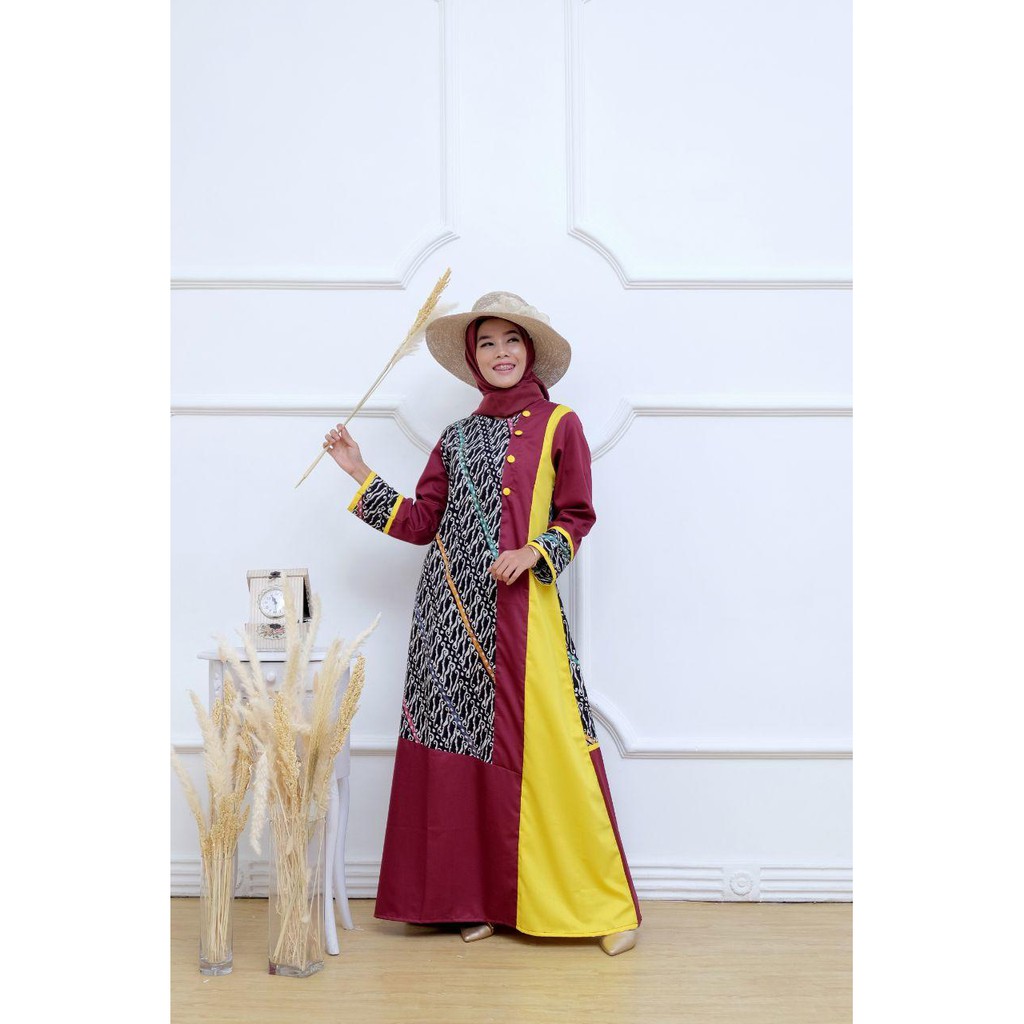 Gamis Batik Kombinasi Kain Polos - Nusagates